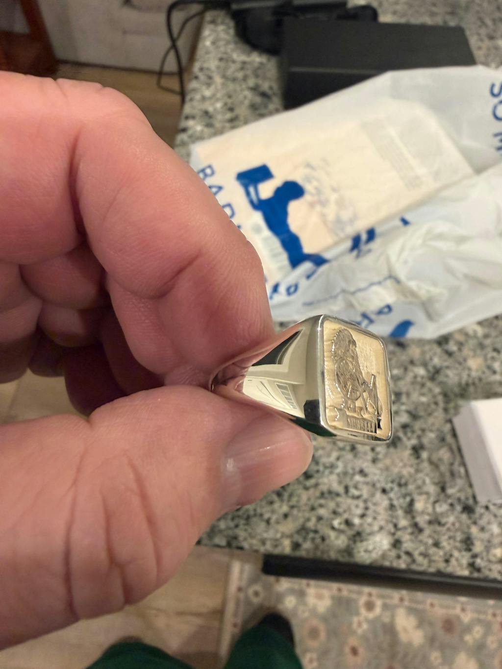 Even better than I hoped! It took me a while to finally decide to order. But this ring exceeded my expectations in every way! The logo was perfectly done, the messages on the side of the ring are perfect, and the quality and weight of the ring are what I hoped for. I am impressed to say the least. I am expecting my friends to now order theirs!