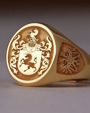 My oldest son was getting married in July. I knew what our family could have arms was cuz we have it in the house given to me by my grandfather. I thought it'd be nice as a gift, to have a Signet ring made with our family crest and name. I was shocked at how beautiful the rain came out. My son said it was his favorite wedding gift he had received from anybody. I personally liked my son's ring so very much, that I went and had designed a new ring for myself. My ring came out so stunning, I had a third ring made for my brother. I will be doing more business with royal Signet in the future. I'm eyeballing some cufflinks next. You cannot go wrong with this company, it is worth every penny.