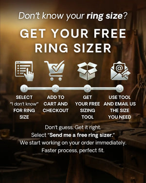 If you're not sure about your ring size, we highly recommend selecting ''I don't know my ring size'' and then ''Send me a free ring sizer''. Use our complimentary sizing tool to make sure you get the perfect fit. If the ring still doesn't fit after delivery, don't worry, just contact us and we'll guide you through the best solution.